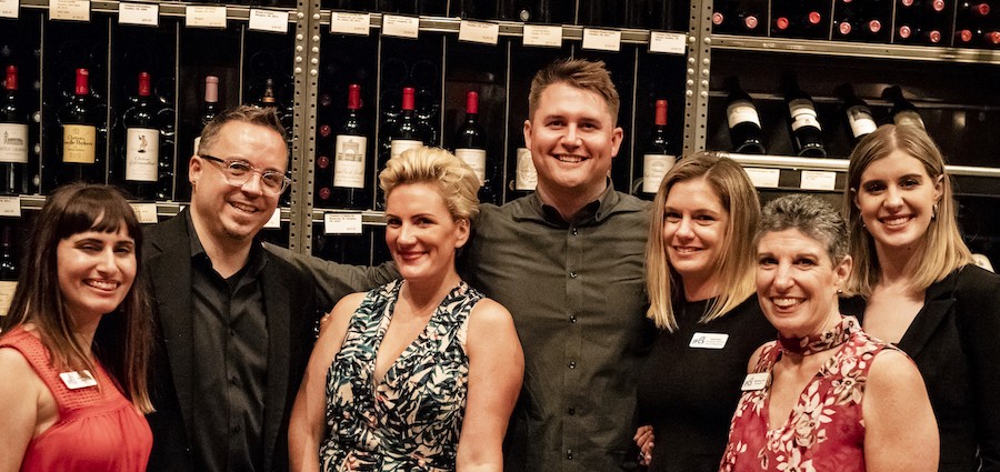 Pictured: JFCS Staff, including Stephen Fancher (second from left) and Laura McManus-Mesia (third from left), and BeyondMe members at the BeyondMe kick-off event at Michael’s on East. Photo courtesy of JFCS.