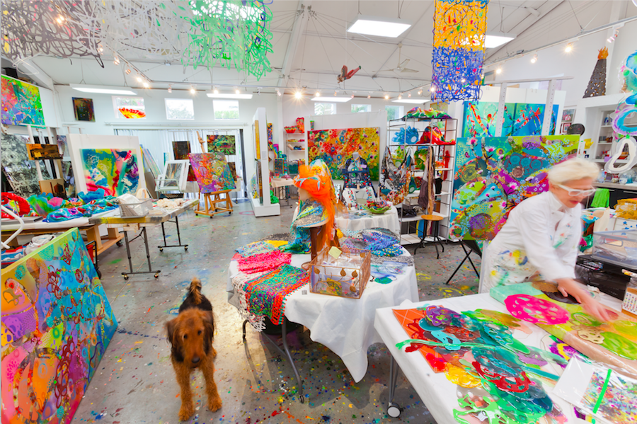 “We believe it’s important to make people understand how art is made,” says Reich, who will open her entire 3,000-square-foot studio to all curious comers. She encourages guests to snoop through every nook and cranny, and she’ll answer any questions about the various paintings and sculptures, made from poured and shaped resin, or anything else they might find in her studio. Everything is on display, but as it normally would be. “I don’t clean up and I don’t make it look like a store,” she says. “It looks like a working studio. It’s basically like coming to my house.”