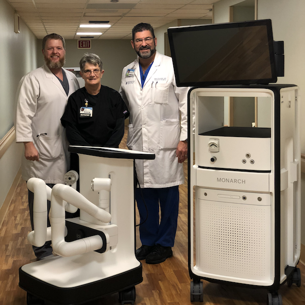 The robot, part of Auris Health’s Monarch Platform, will help surgeons find and treat cancer through safer means, according to Dr. Joseph Seaman, medical director of SMH’s lung cancer screening program. The new technology allows him and his team to provide better bronchoscopies for patients.