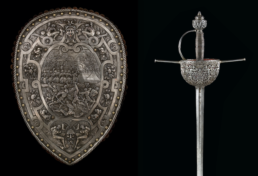 Pictured: Parade Shield, mid-late 19th century, and sword known as Spanish type, Italian-made, ca. 1670. Both on loan from Museo Stibbert.