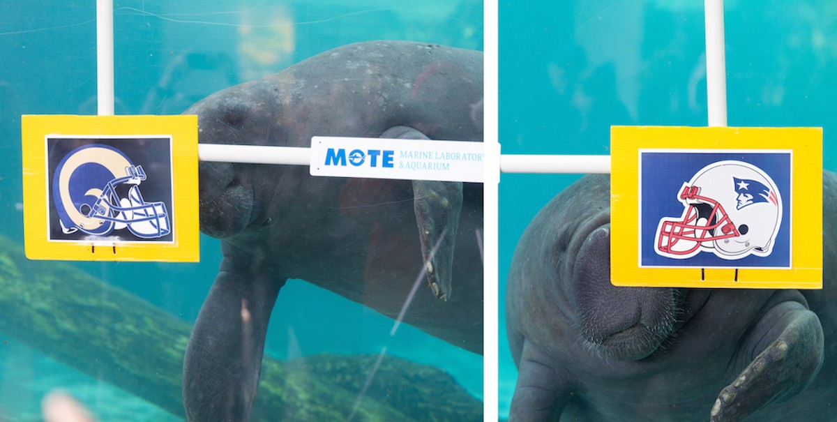 Mote Resident Manatees Hugh and Buffet Make Super Bowl LIII Predictions