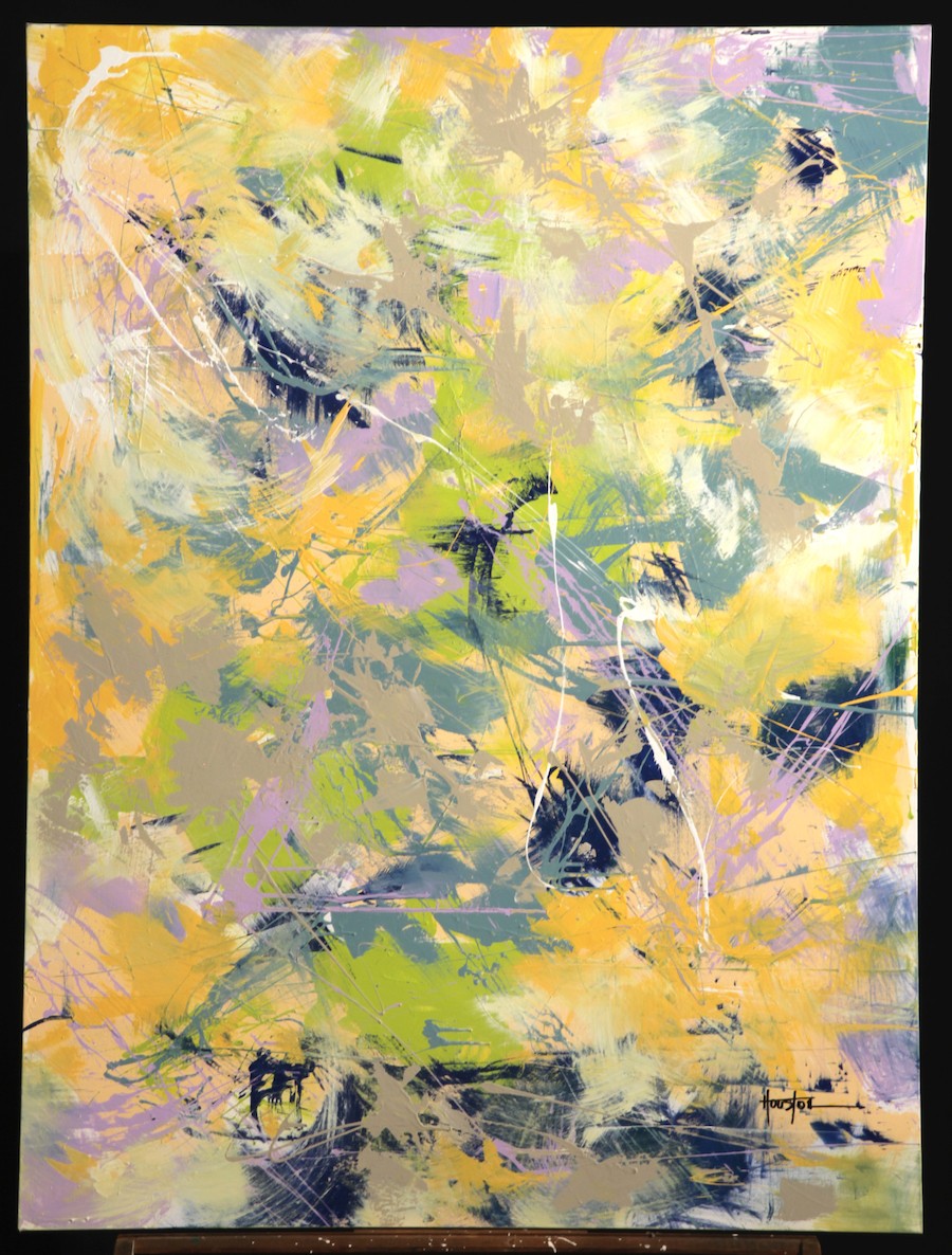 Some of this eclectic nature comes from travel, Houston says, having lived for a time in New York City, before raising a family in Houston, TX, and eventually bouncing around to Sarasota. Some comes from a career path as varied, ranging from jewelry manufacturing to art publishing and even previous stints as a gallery owner. However, it was the 25 years working in building and contracting that gave the artist an on-the-job education in abstract art, as Houston found himself in modern homes with hallways hung with contemporary work and abstract masters alike. Art school taught him to appreciate and emulate Rembrandt and Michelangelo, he says, but this experience opened the world of abstraction.