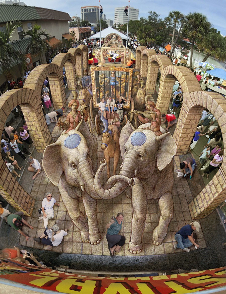 Pictured: "Circus Paradise" and Kurt Wenner from Sarasota Chalk Festival 2012. Photo by David Tyler.