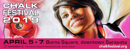 The Sarasota Chalk Festival returns to downtown Sarasota for the April 5 - 7, 2019 festival that will host 50 national and international pavement artists who will transform Burns Square into a "Museum in Motion" as spectators become a part of the creative process. Organizers will debut an interactive 3-dimensional illusion environment that appears normal, but people and objects within it are distorted with water appearing to flow uphill. For more information go to chalkfestival.org