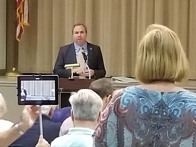 At a town hall held by Gruters Saturday, retailers in the audience thanked Gruters for filing the bill. Many brick-and-mortar companies say online sales have dramatically hurt their revenues, in part because consumers want to purchase goods tax-free.