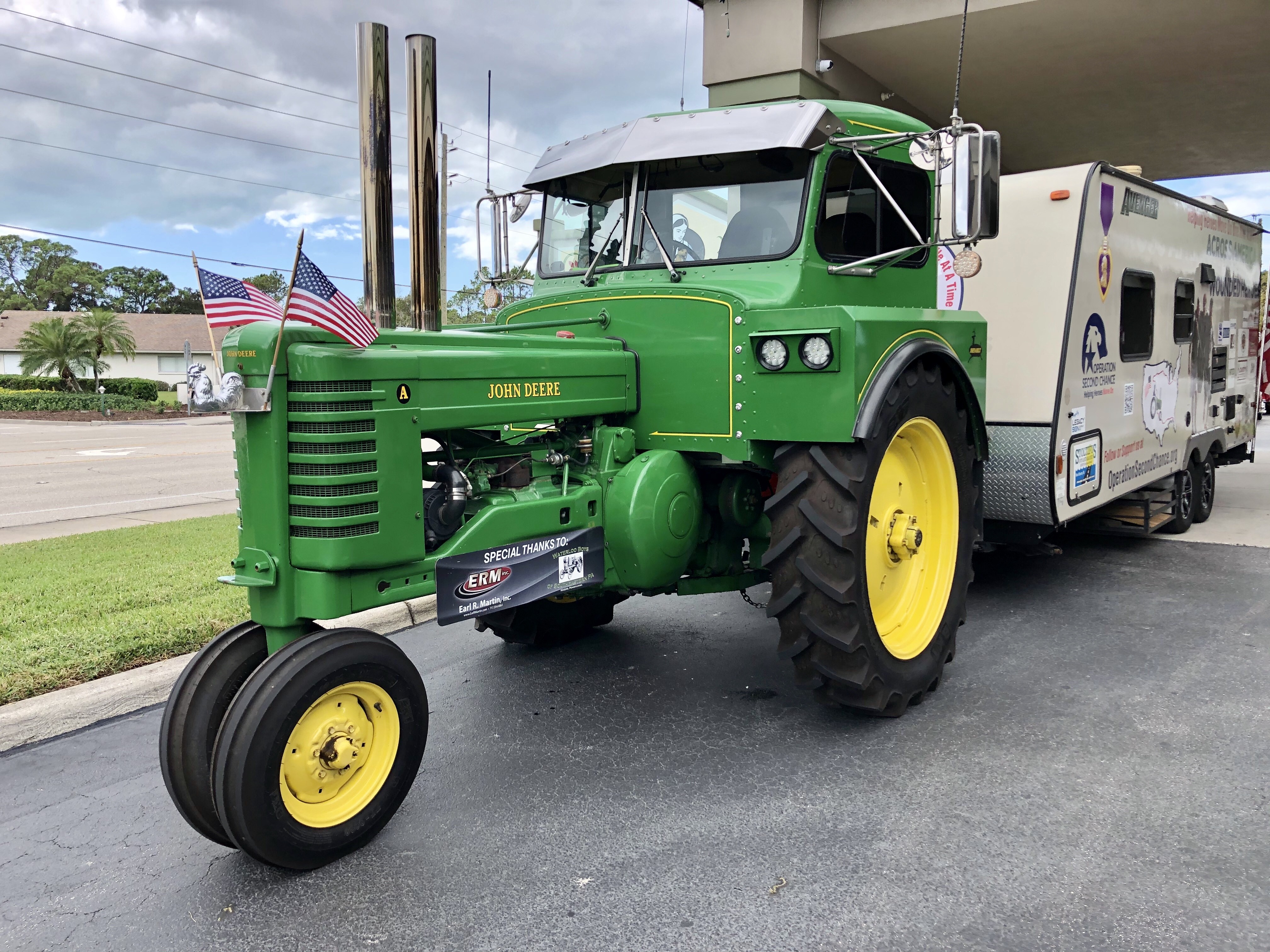 Stoltzfus started his journey in Germantown, Maryland in May before heading across the motherland to Red Lodge, Montana, arriving in time for one of OSC’s Veteran Retreats. From Red Lodge, he traveled south through Texas before heading his way back to his home in Sarasota. Along the way, he met many veterans who shared their stories and donated personal items forStoltzfus to hang in his tractor as he continued on for the cause. Some of these gifts include a service members' Purple Heart medal, old photographs from war, military patches, mass cards of relatives passed and more. His 5500-mile journey concluded as he rolled into the Der Dutchman restaurant on Bahia Vista with a local crowd applauding at the finish line of his philanthropic pursuit.