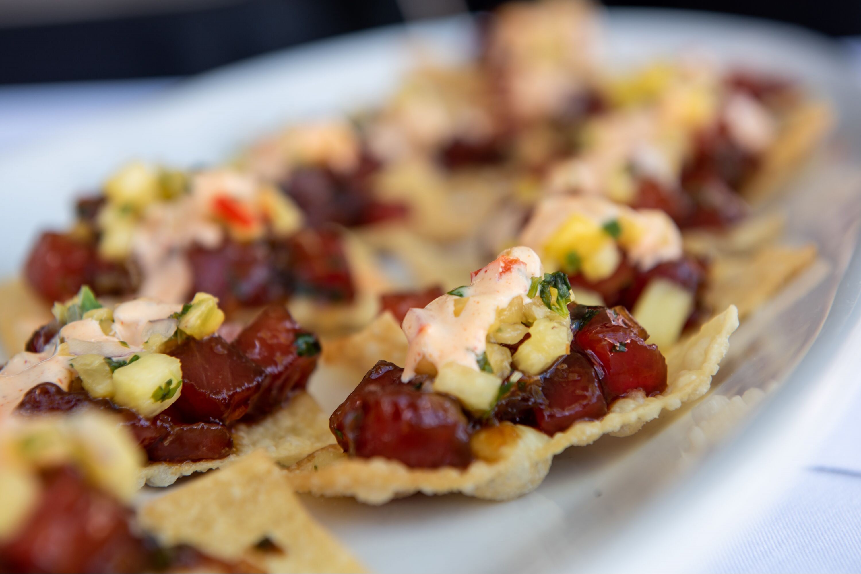 Among them, was one the newest members to join the organization, Avli Mess Hall. The recently opened which featured a sampling of its acclaimed Alexandria Kefta, a Mediterranean-inspired dish of beef, Muhammara and pita. Meanwhile, two like-minded French restaurants provided crepes as their featured dish. The Bijou Café impressed the masses with its Duck Leg Confit Crepes with Boursin and port wine cherry sauce, and Miguel's Restaurant kept it sweet and simple, with peaches and cream. Ophelia's on the Bay repped Siesta Key and brought the ever-pleasing seafoodie favorite, Tuna Wontons with Tropical Pico, while Bradenton's Ortygia Sweet Stuffed Peppers showed its Italian colors, and Tsunami hand-rolled its faved Party Roll, sushi with spicy tuna, shrimp and lobster. For a traditional American staple, Webber's Hot Dogs offered its hot dogs, with build your own toppings, and Reyna's Taqueria kept it authentic Mexican with Blue Corn Sopes with chicken in mole poblano, garnished with crema and sesame seeds. It appeared each team of culinary experts stuck to what they do best and gave the crowd what they wanted: an epicurean adventure that represents the local, yet worldly talent of this region.