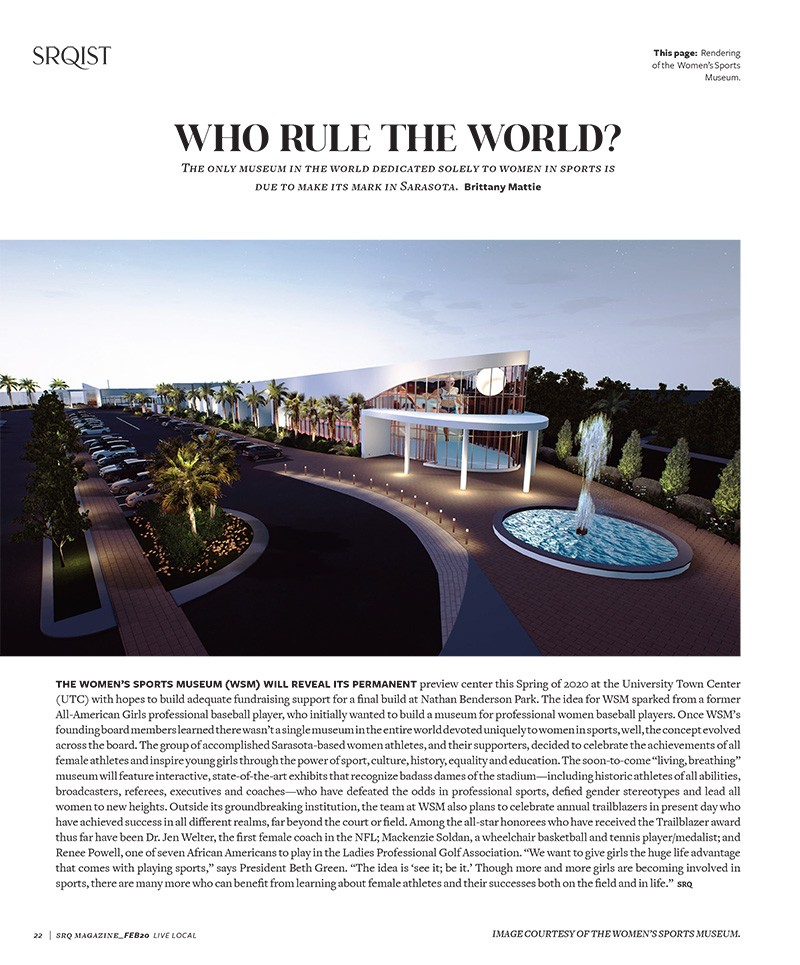 The only museum in the world dedicated solely to women in sports is due to make its mark in Sarasota.