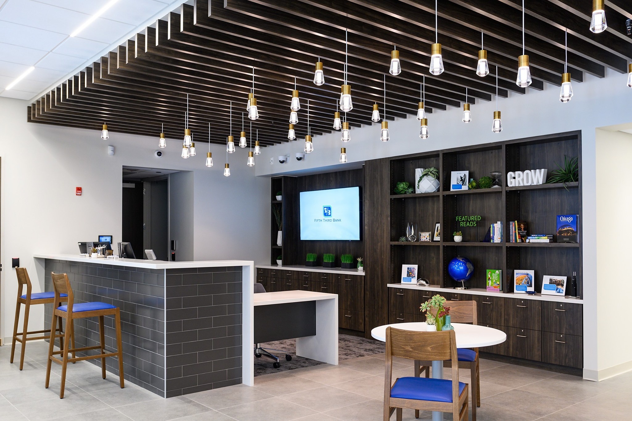 Driven by a fundamental shift in how customers perceive, and use, retail bank branches, Fifth Third recognized a niché in serving those seeking new ways to seamlessly manage their finances in an easy, efficient and non-judgemental manner. The company interviewed many customers in several cities to understand their attitudes, beliefs and needs around their financial lives. “They told us that they wanted an environment where they felt welcome,” says Jennifer N. Auray, vice president of regional marketing and communications. “They didn’t want to feel judged if they didn’t understand part of their finances. They wanted a place that felt warm. They wanted a space that looked and felt approachable, knowledgeable and trusted. They wanted a variety of places to meet with their banker.”