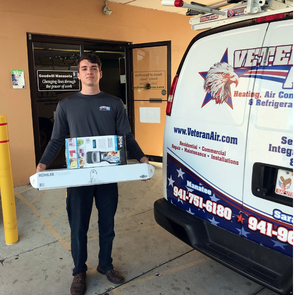 Throughout the month of February, Veteran Air Conditioning held a donation drive to support Goodwill Manasota’s mission services. The company picked up gently-used items that its clients in the Sarasota-Manatee area no longer wanted or needed, and transported them to Goodwill, where they are being sold in retail stores throughout the area. Proceeds support Goodwill’s mission of changing lives through the power of work. Veteran Air Conditioning owner Kevin Henault, who has been a proud Ambassador for Goodwill Manasota for a number of years, supports the organization in particular for its commitment to helping veterans reintegrate into their families, jobs, and communities. "I appreciate that Goodwill works to help and employ veterans through its many programs and services," said Henault. "Especially given my own family’s tradition of service, I'm honored to partner with Goodwill to help the veterans in our community as well as those who are seeking to improve their lives through career services, education, and training." Henault, who employs numerous veterans, has hired veterans through Goodwill's Veterans Services Program. Veteran Air Conditioning management offered up a prize of $200 for the technician who brought in the most donations. Nearly 50 households donated to the effort, with eight technicians collecting goods during service calls. Items the team members collected included clothing, shoes, jewelry, functioning computers, household items and decor, kitchenware, books and more.