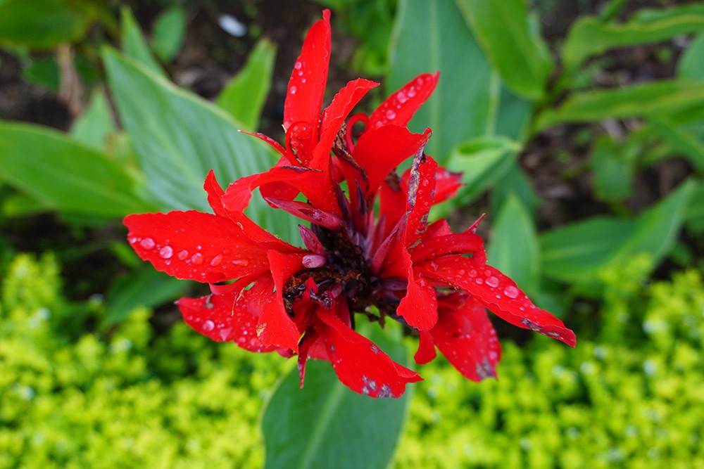 SRQ: I want my yard to be a tropical oasis — I hear you can grow Cannas here; is that true? [Canna lily plants - a rhizomatous perennial with tropical-like foliage and large flowers that resemble that of iris]