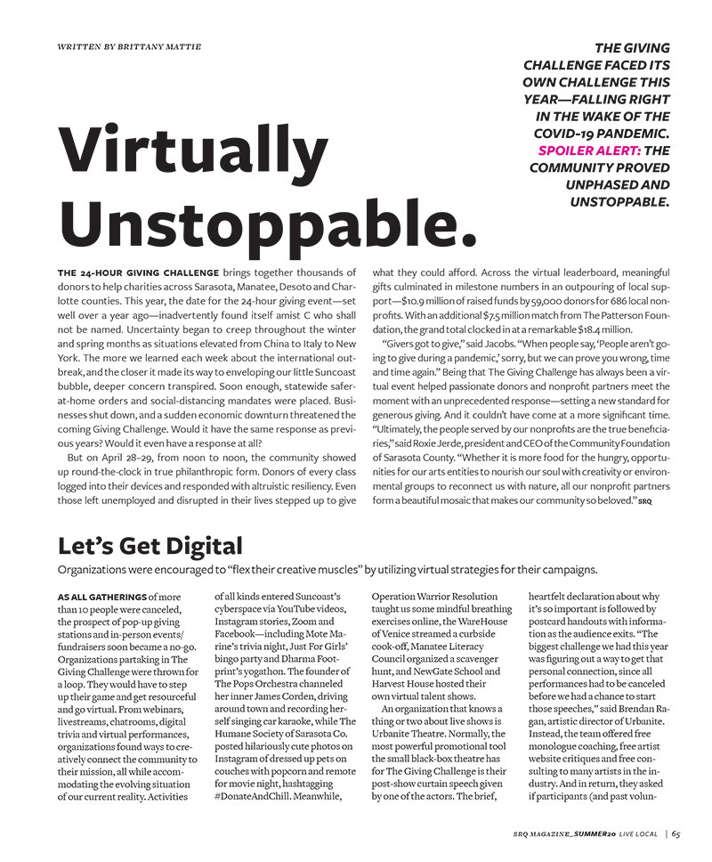 Click here to read the full article from SRQ's Summer 2020 edition.