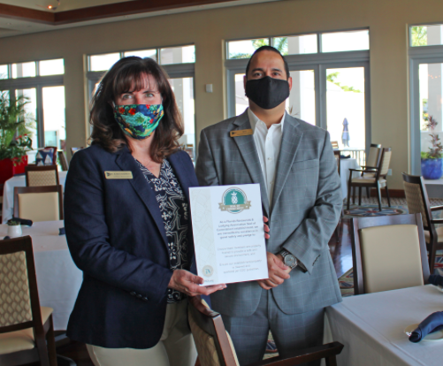 Sarasota Yacht Club was recently awarded the Florida Restaurant and Lodging Association (FRLA) Seal of Commitment, a promise that the Club achieved enhanced standards as designated by FRLA to ensure the safety of staff members and guests. SYC is among Florida’s first 100 establishments and the Suncoast’s first local private club to receive this designation. “FRLA is proud to designate Sarasota Yacht Club with our Seal of Commitment for its commitment to sanitation excellence,” said Carol Dover, President and CEO of the Florida Restaurant and Lodging Association. “Through this achievement, the Club demonstrates its serious pledge to ensure the safety and health of employees, members and guests, and we commend them.”