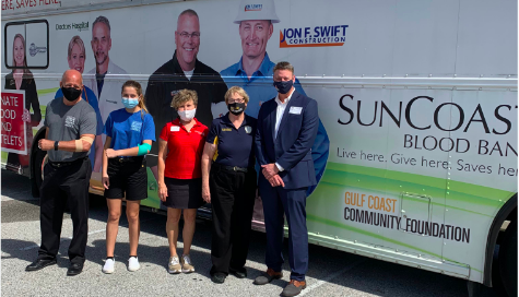 Sarasota Military Academy High School hosted on-campus blood drives for the SunCoast Blood Centers on October 21 and 24, 2020. Scott Bush, SunCoast Blood Centers CEO, was on-site to congratulate cadets and administration especially SMA Clinic Supervisor Leslie Collier, RN who has held blood drives at SMA for over 15 years. “SMA is helping save lives by supplying local hospitals much needed blood for the community,” said Bush. Blood donations are at an incredible low with blood needs outpacing supply. According to the SunCoast Blood Centers, historically 20% of their blood supply comes from high school students, now they represent only 2% due to COVID restrictions on high schools.