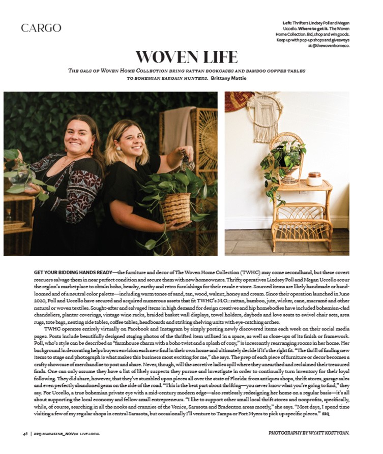 The gals of The Woven Home Collection bring rattan bookcases and bamboo coffee tables to bohemian bargain hunters.