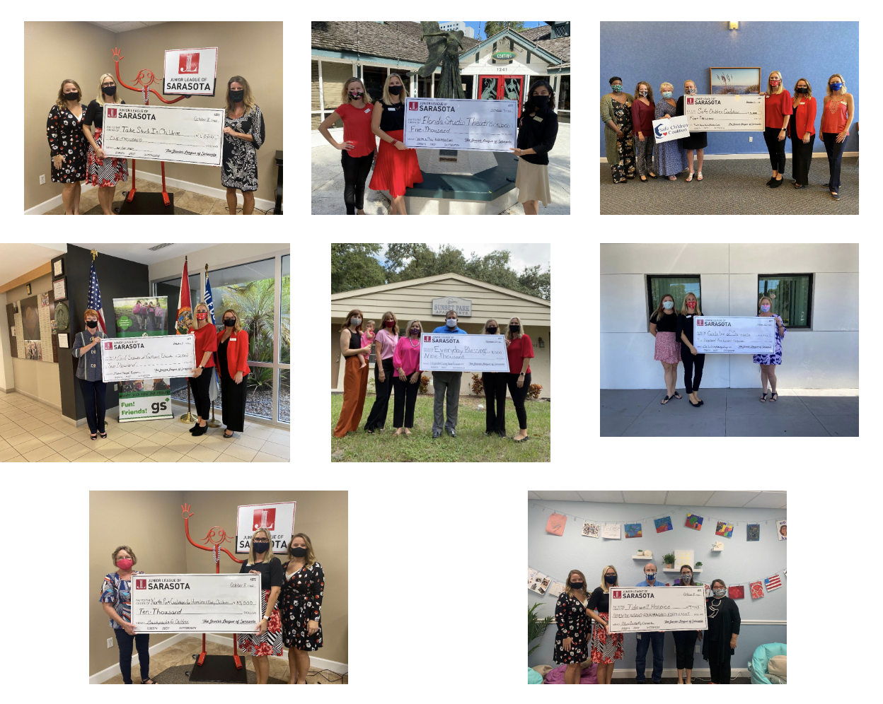 The Junior League of Sarasota (JLS) awarded eight grants to local non-profit organizations totaling $45,000 in October 2020. A total of 87 applicants were considered during the grant selection process. Committee members scored the applicants based on the four core areas of the JLS mission: children, women, families, and young adults aging out of foster care. The following recipients were selected: Everyday Blessings $9,000, Florida Studio Theatre $5,000, Girl Scouts of Gulfcoast Florida $2,000, Girls Inc. $6,541, North Port Coalition for Homeless/Needy Children $10,000, Safe Children Coalition (SCC) $4,000, Take Stock in Children of Sarasota (TSIC) Program $1,000 and Tidewell Hospice $7,448.
