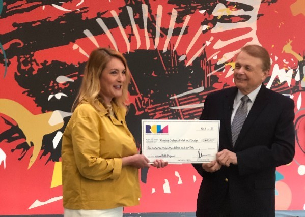 As part its ongoing commitment of support, the Ringling College Library Association (RCLA) presented a gift of $600,000 to Ringling College President Dr. Larry Thompson. RCLA President Emily Walsh stated the funds are part of RCLA’s most recent gift commitment of $3 million supporting the Alfred R. Goldstein Library and student scholarships. “RCLA’s ongoing support of Ringling College of Art and Design is crucial to our ability to provide our students not only a state-of-the-art library to enhance their learning and collaboration, but also much-needed financial assistance through scholarship funding,” said Larry R. Thompson, president of Ringling College of Art and Design. “We are so very thankful to RCLA for its long-time partnership with Ringling College, and we look forward to many more years of serving Ringling College students together.”