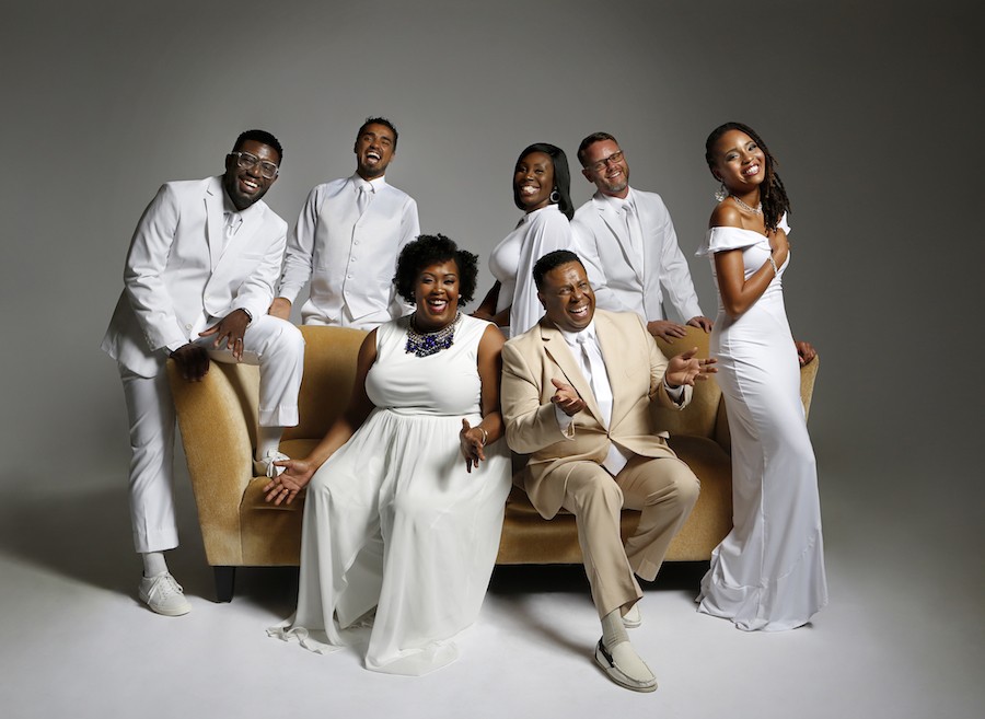 Pictured: WBTT founder Nate Jacobs (seated, right) with artists (from l-r) Henry Porter II, Michael Mendez, Ariel Blue, Tsadok Porter, music director James 'Jay' Dodge II, and Jai Shanae Photo by Sorcha Augustine.