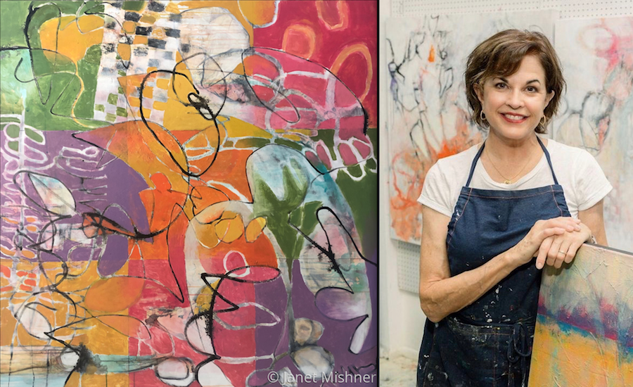 In 'Searching for Happiness,' Janet Mishner blends the freedom of abstract painting with the confines of life during a pandemic. Photo courtesy of Janet Mishner.