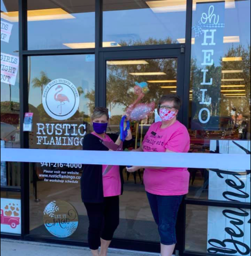 Do-it-yourself (DIY) creative studio, Rustic Flamingo, officially opened in Braden River Plaza yesterday with a special ribbon cutting ceremony, in coordination with the Manatee Chamber of Commerce. While Rustic Flamingo offers a new fun night out option with an array of crafts and projects to choose from, its the mission to uphold workplace diversity and inclusion that makes this new business especially worth mentioning. "We create opportunities for people that are often overlooked," says Jacque Rush, founder and co-owner of Rustic Flamingo. Ruch has more than a decade of experience developing educational and employment programs for persons with unique abilities. “Rustic Flamingo combines two things I love, working with people with unique abilities and creating farmhouse decor," she says.