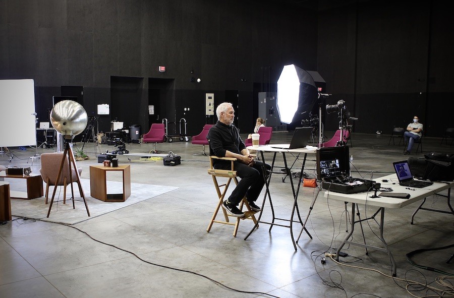 Pictured: Filmmaker Ray Dillman chats with the media before his public Q + A from inside the Ringling College Studio A. Photo by Rich Schineller.