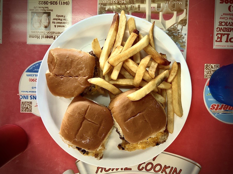 Located in the shopping plaza on the Northwest corner of Tuttle and Bee Ridge, the diner has held on tightly to simpler times. Cheap, hearty and served with a smile, their mini burgers, which they affectionately call “tastys” and come in adorable groups of three, are so good that the restaurant advertises their $3.79 price on the outside of the building. They come with fried onions and pickles on top of good old fashioned 100% chuck, with fluffy little burger buns similar to Hawaiian rolls. Like little burger vitamins, they are the cure for the existential dread that characterizes the modern world.