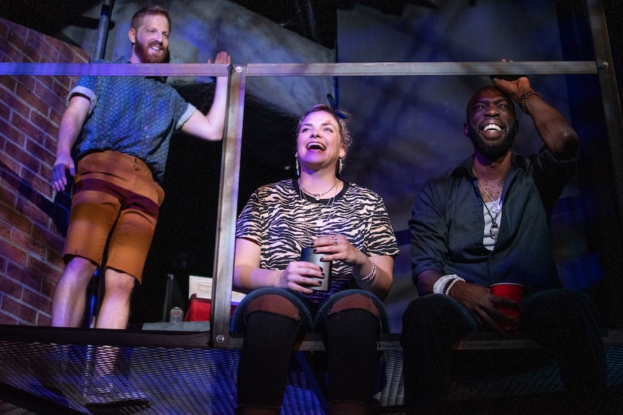 Pictured (left to right): Ryan Leonard, Mary Williamson and L James in SENDER by Ike Holter. Photo by Dylan Jon Wade Cox.