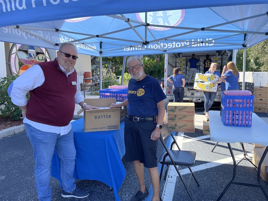 The Child Protection Center (CPC) celebrated another yearly “Turkey Day” last week. The clients and families of the organization, who utilize the nonprofit’s child abuse services, pick up a food basket for Thanksgiving, provided by the Gulf Gate Rotary Club. In partnership with Publix at Sarasota Pavilion, the Gulf Gate Rotary Club has provided these baskets to the Child Protection Center for over 40 years. Each family receives a turkey and fixings for Thanksgiving dinner as well as food for a full week. Stan Beberman, the President of Gulf Gate Rotary, said, “This year and the foreseeable future remain challenging with the COVID pandemic and economic pressures creating heightened stress levels and resulting in significant needs for many families.” Despite the fundraising obstacles brought by the pandemic, the Rotary accomplished their goal of providing 80 baskets, which were then distributed to CPC client families.