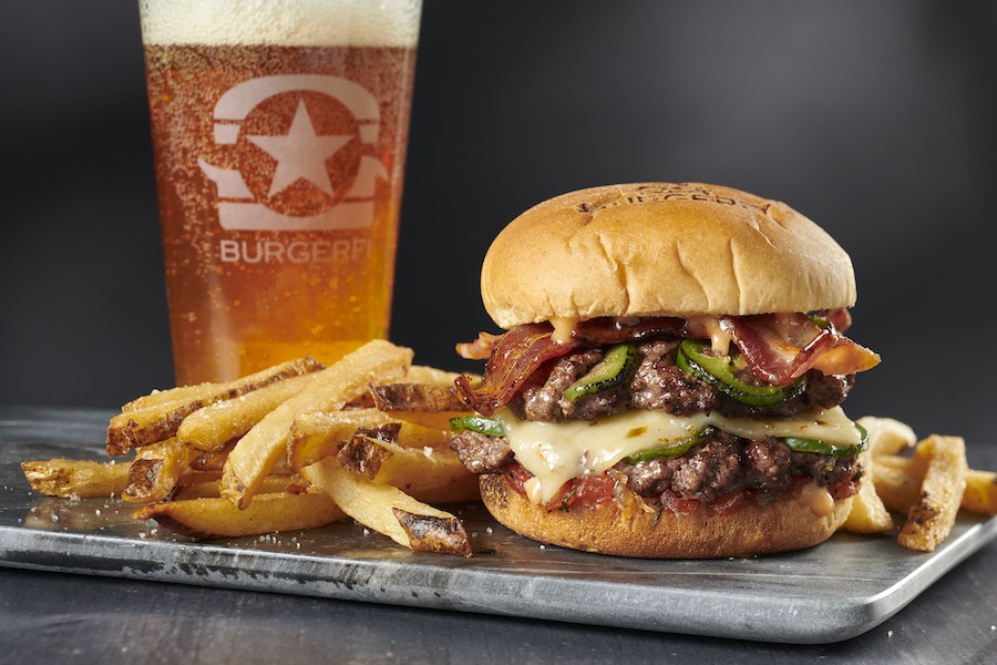 Pictured; The SWAG Burger at BurgerFi is a juicy stack of Wagyu beef, candied ghost pepper bacon, spicy steak sauce and pepper jack cheese. Photo courtesy of BurgerFi.
