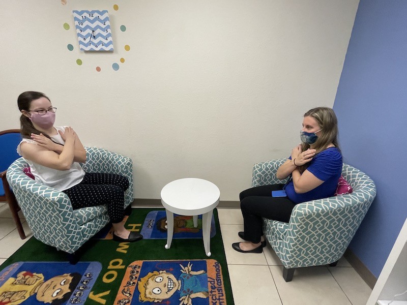 Pictured: CPC's Clinical Director Amanda Jans demonstrating a calming exercise.
