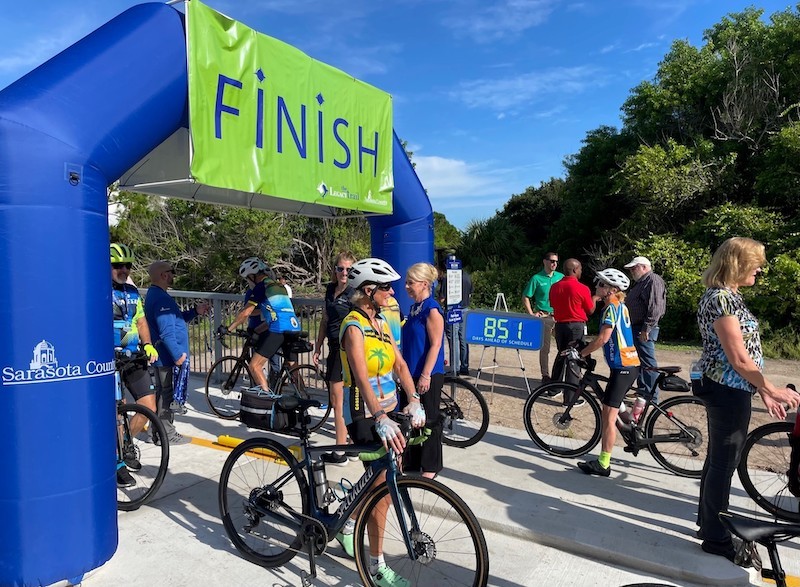 Pictured: Cyclists and the public gather at the Legacy Trail North Port Connector Ribbon Cutting in September 2022. Courtesy of Gulf Coast Community Foundation.