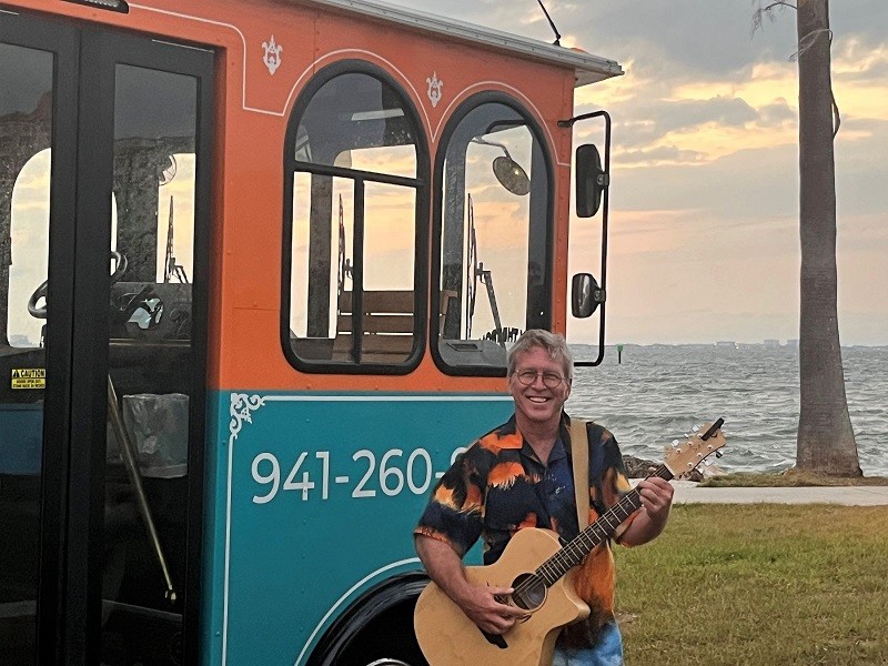 Pictured: Tour guide Steve McAllister entertains guests on the Sunset Cabaret Tour. Photo Courtesy of Discover Sarasota Tours