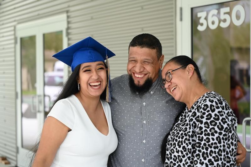 Pictured: Future Leaders Academy senior Maria Prisila E. and her parents. She will be attending New College of Florida.