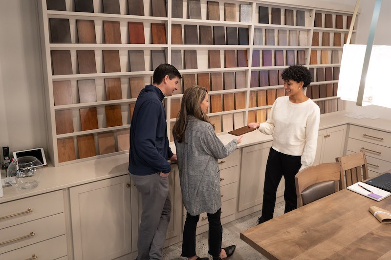 Pictured: DutchCrafters staff help customers handpick preferred wood types, finish colors, fabrics, furniture styles and innovative design options. Photo courtesy of DutchCrafters.