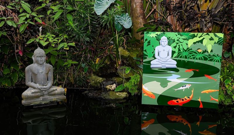 The exhibition, which acts as a retrospective of Pirman’s career, features prints of Pirman’s work both inside the Museum of Botany & the Arts as well as large scale aluminum prints displayed outside amongst the gardens. “Pirman has really been known in Sarasota for capturing these iconic views of Sarasota in his own style, which is a very modern, very graphic illustration style,” says Rominiecki. “And we were thrilled by several illustrations he did of Selby Gardens–he did one of our Moreton Bay fig tree, the Historic Selby House and of our iconic koi pond as well. We thought it would be wonderful to show these illustrations next to the real thing–it’d make for a very meta experience.”
