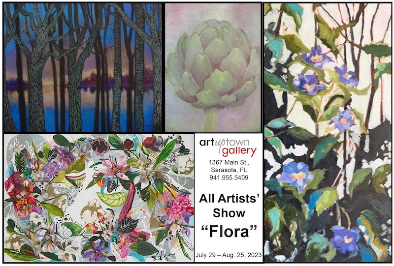Art Uptown Gallery will display their artists' creative interpretations on the theme, FLORA, from July 29 to August 25. The gallery will offer paintings and flower-filled collages, plein-air landscapes, abstracts and traditional florals, decorative glass, ceramics, whimsical garden sculptures, bronze and glass mosaics to enchant visitors with a variety of "plant-based" fine art. There will be a First Friday public reception on August 4 from 6 - 9 pm. The exhibit opens Saturday, July 29, and runs through Friday, August 25.
