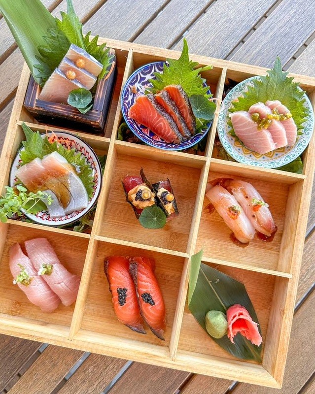 Pictured: The Omakase-style Toyosu box at JPAN is filled with treats from the Toyosu Fish Market in Tokyo. Photo Courtesy of JPAN Sushi and Grill.