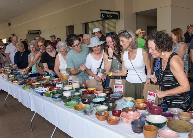 Pictured: Guests at Bowls of Hope look for the perfect bowl among the 1,000+ donated by amateur and professional craftspeople. Photo courtesy of All Faiths Food Bank.