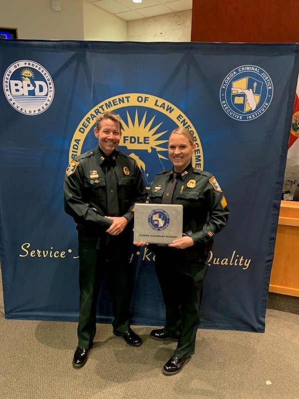 Sarasota County Sheriff Kurt A. Hoffman is pleased to announce that Corrections Sergeant Stephanie Knapek graduated on December 15 from the Florida Leadership Academy, Class 55, hosted by the Florida Department of Law Enforcement and the Florida Criminal Justice Executive Institute. Sergeant Knapek and 43 other first-line supervisors attended the four week-long sessions. The graduates learned skills necessary to support the needs of their local agencies and their communities as they prepare for future challenges. The Florida Leadership Academy training prepares these first-line supervisors to exemplify the character and integrity expected of criminal justice professionals and to examine the characteristics needed to become an efficient leader. “The Florida Leadership Academy not only benefits the graduate, but it elevates service throughout our agency and community,” said Sheriff Hoffman. “Training supervisors to be decisive and effective leaders is critical to keeping all areas of our agency top-notch. At SCSO, we value and prioritize training.”