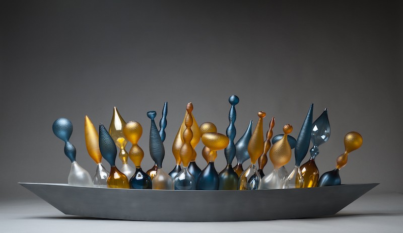 Housed in one of the Ringling College soundstages, the Glass Art Fair transforms that filmmaking space into a storytelling device of a different sort, as multiple exhibitions within the fair help tell the tale of a medium both classic and celebrated, as well as modern and innovative. This includes an exhibition of work by acclaimed glassworking duo Philip Baldwin and Monica Guggisberg, as well as four themed exhibitions featuring a variety of artists and selected historic works from Habatat’s yearly glass auction. “It’s so much more than sculpture on a pedestal,” Schey says. “It’s something you have to see in person. Walk around it. Watch the light refract. See the artist’s intentions.”