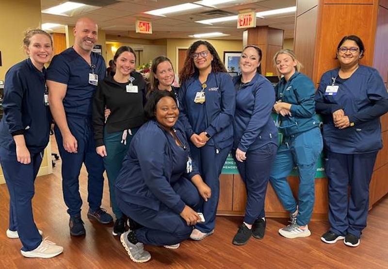 Pictured: Todd Cruz, RN Chief Nursing Officer joins Alexis Pompey, RN and the team from PCU at HCA Florida Sarasota Doctors Hospital.