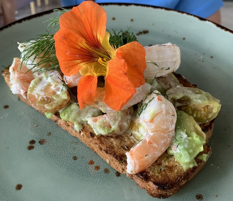 Pictured: The Spanish Point shrimp toast at The Green Orchid. Photo by Laura Paquette.