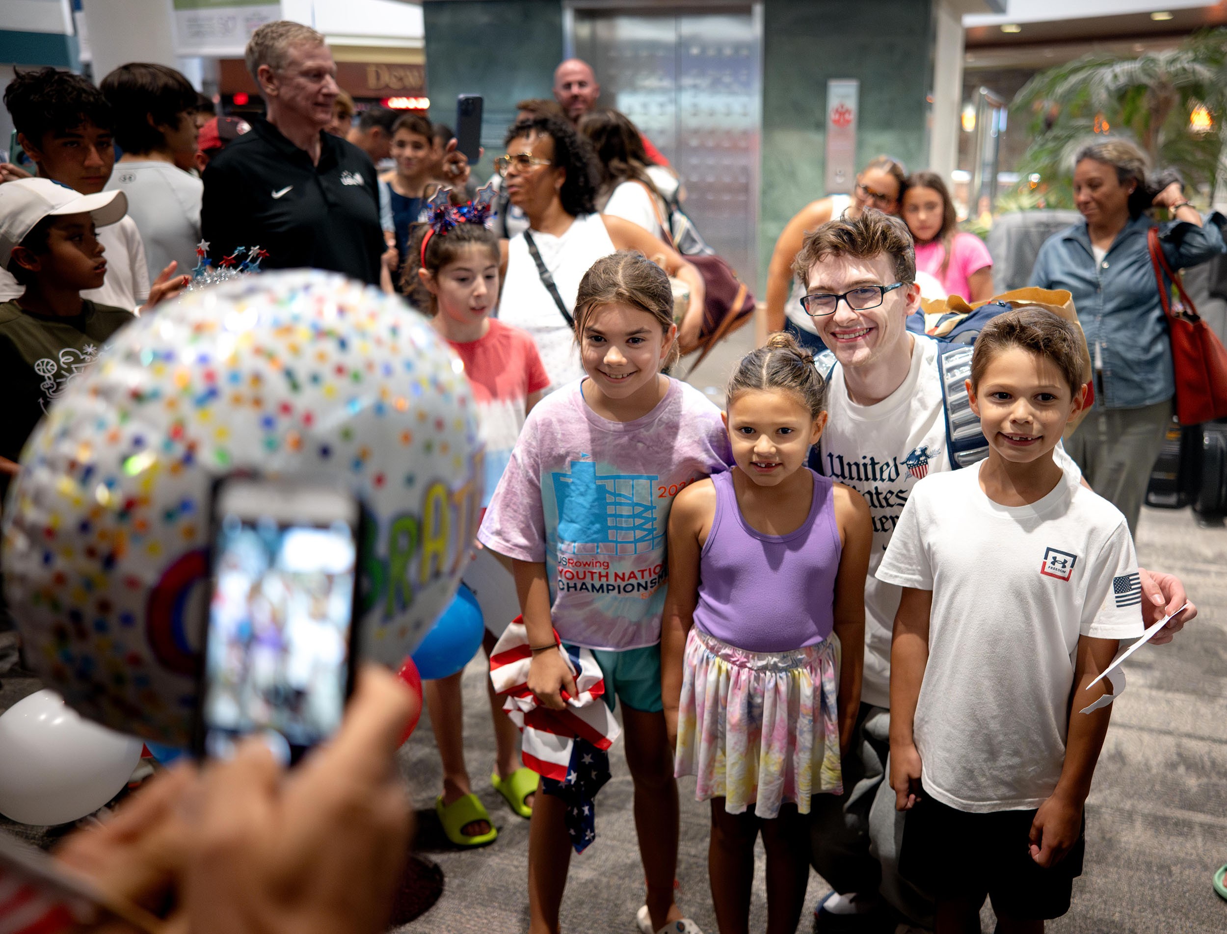 The returning U.S. Olympic Pommel Horse Bronze Medalist Stephen Nedoroscik touched down at SRQ Airport on Delta Airlines Tuesday at 7:23 pm on his trip home to Sarasota from the Olympic Games in Paris, France.
