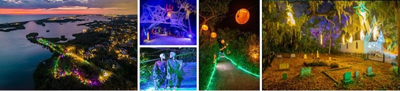 Lights at Spooky Point, the Halloween-themed light show introduced to Selby Gardens’ Historic Spanish Point campus, returns in October for a third season. This year’s show kicks off on Wednesday, October 9 and remains on view nightly through Halloween. Tickets for Lights at Spooky Point can be purchased through Selby Gardens’ website at selby.org or in person at either of its two campuses. Member tickets go on sale September 3; Non-member tickets go on sale September 10. To become a member, visit selby.org. Visitors to Lights at Spooky Point will follow an eerily lit path through the wooded campus and past several of its historic structures. Along the way, they will encounter fantastically fun creations and unique Halloween light displays around every bend. Highlights that return for the second year include spectral “ghost orchids” floating above the Pioneer Graveyard, giant “Dracula orchids” draped with Spanish moss, and colorful “spider orchids” clinging to their webs in the trees. These and other decorations are inspired by actual plants of the same names, a creative nod to Selby Gardens’ botanical and horticultural mission. Guests also will find plenty of pumpkins, scores of skeletons, and other Halloween classics at “Spooky Point.” The show is designed for all ages, with just a few minor jump-scare opportunities to keep older kids happy. A limited number of tickets will be sold for each night of the show, with two entry times available—6:30 and 7:45 p.m. Guests with young children or mobility issues are encouraged to consider the earlier entry. Those who want the full “Spooky Point” experience can opt for the later slot, after dark. Ticket prices for Lights at Spooky Point are $34 for adults ($24 for Selby Gardens members), $19 for ages 5-17, and free for children 4 and under. Advance ticket purchase is encouraged, as some nights may sell out prior to opening time. Food and beverages will be sold on-site throughout each evening of the show. To learn more and purchase tickets, go online to selby.org or visit the Welcome Center at either the Downtown Sarasota campus or the Historic Spanish Point campus.