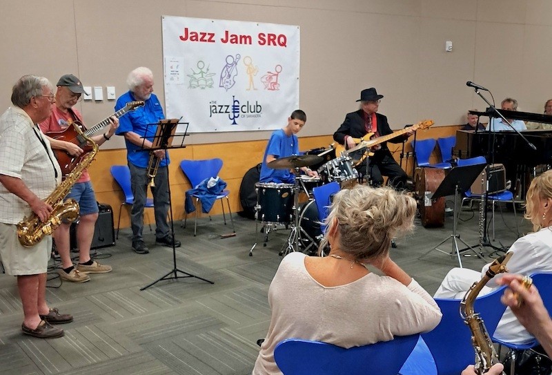 Pictured: Jazz Jam SRQ meeting at the Downtown Selby Library. Photo Courtesy of Ron Kushner.