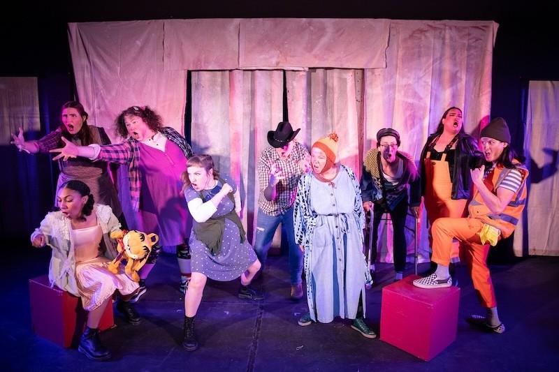 “With every show this season, we want to take controversial topics and look at them in new ways,” says Luke Manual, Dingbat’s founder and producing artist director, as well as Urinetown’s Little Sally. They point to the theater’s first show of the season, Joseph and the Amazing Technicolor Dreamcoat, as an example.“We set that at a drag queen story hour that was cancelled by anti-drag protesters,” they say, letting a small but heavily pregnant pause say the rest.