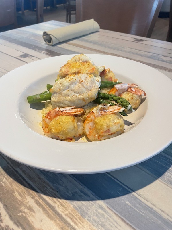 One of the standout items on the new menu is the stuffed combo, a delectable seafood dish featuring a duo of grouper and shrimp filled with a rich seafood stuffing with a zesty lemon beurre blanc drizzle served alongside flavorful coconut rice and asparagus. And for dessert, you can treat your taste buds to a delightful fusion of citrus and sweetness with our new lemon curd cheesecake, perfectly paired with a sweet and tangy blueberry sauce. It’s the kind of light, bright and lively meal that’s perfect for a day by the beach.