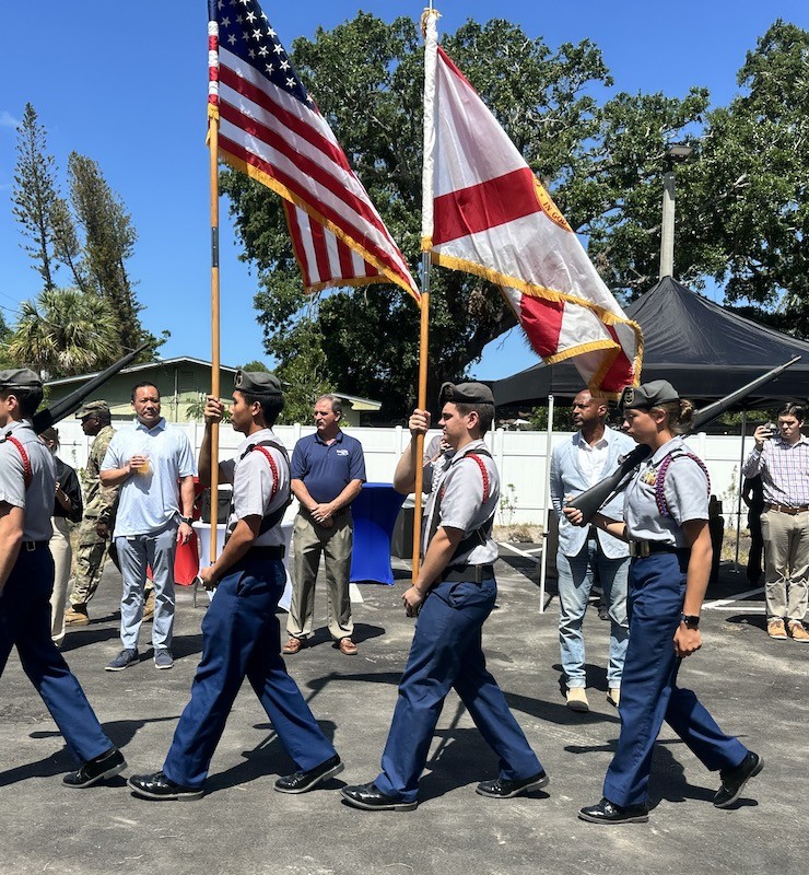 Pictured: Students from Sarasota Military Academy presented the colors at the Heroes’ Village ceremony last week. Photo by Barbie Heit.