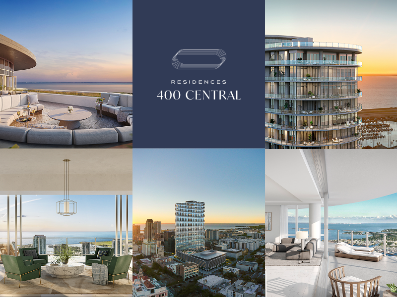 The Residences at 400 Central offer breathtaking views, elegant design, and a full suite of owner amenities right in the heart of St. Pete. Presenting a variety of floor plans with one to four bedrooms, plus a selection of custom penthouse homes in our exclusive Sky Collection, there is truly a residence for everyone. Located on the 46th floor sits the Sky Lounge Observatory- the highest vantage point in St. Pete, offering unparalleled views of Tampa Bay and the Gulf of Mexico. Whether you're taking in breathtaking sunsets or the dazzling city skyline, this exclusive space elevates everyday living. Schedule an appointment at the Sales Gallery today to secure your residence and discover an elevated approach to city living.