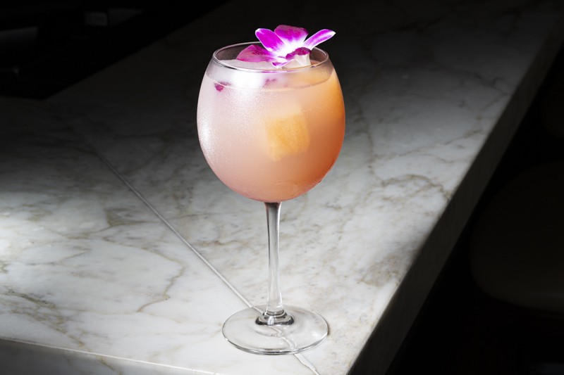 “The Siren is really a riff on a classic cocktail, the French 75, which is originally made with gin. We can make the Siren with gin, vodka or tequila, so it’s a very versatile cocktail. I do love it with gin more than any other spirit,” Finley says. “What we add to that is fresh lemon juice, elderflower liqueur and then wonderful cranberry, grapefruit and orchid ice cubes. As the ice melts, the flavor and the color of the cocktail evolves, emulating Sarasota’s striking sunsets. We finish off the drink with prosecco to add a little bit of effervescence.”